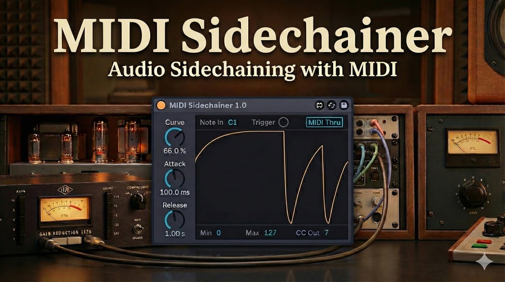 - Repeats this continuously, acting like a classic side-chain compressor — but purely in MIDI.